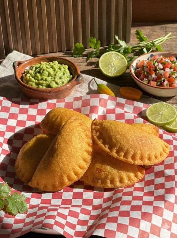 Nuestras empanadas de tamaño grande son las consentidas de la casa. Hechas con una masa de maíz 100% natural, perfectamente crujiente y dorada, cada una es un tributo a la sazón de nuestra tierra. Con el tamaño ideal para ser las protagonistas de tu mesa, estas empanadas están generosamente rellenas de carne o pollo guisado con ese toque casero que tanto extrañas.